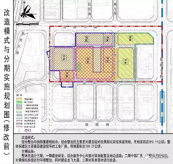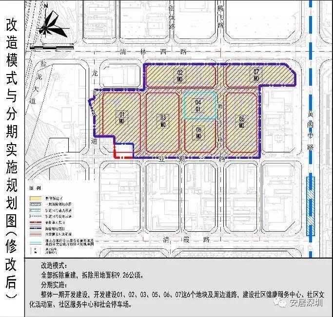 (三)优化华美中路与业勤二路的交叉口线位,优化公园绿地和公共配套设施的设置,改造模式由综合整治与整体拆建相结合改为整体拆除重建,三期开发改为整体一期开发。