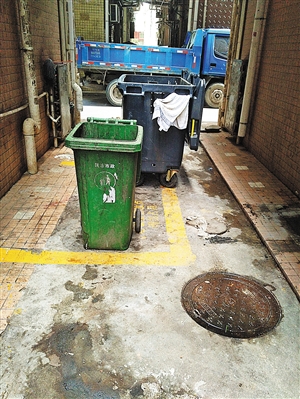龙华民清路第二住宅小区门口,转运桶未划线。