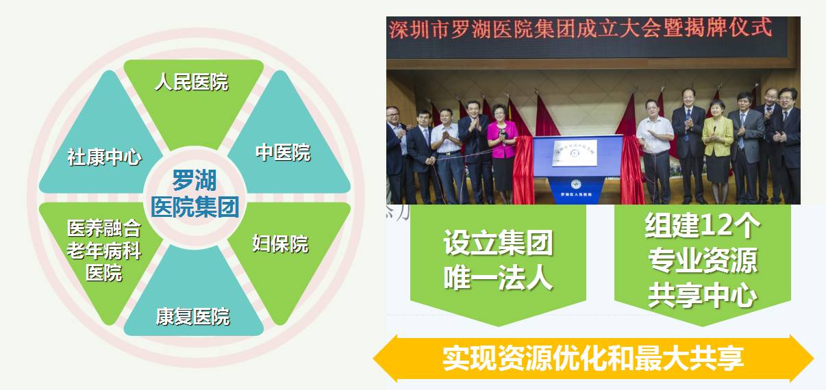 今年,深圳将参考“罗湖模式”,推动各区至少建立1家基层医疗集团或紧密型医联体,即以行政区、管理区或若干个街道为服务区域,由1家三级综合医院牵头,若干家社区健康服务中心、康复护理机构以及其他医疗卫生机构共同组成的紧密型区域医疗卫生服务共同体,实现“少看病、少住院、少负担、看好病”的“大健康”目标。