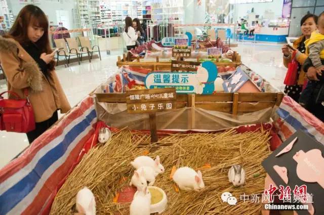柳州市多家商场内最近出现了“动物养殖园”,养殖兔子、鸭子和仓鼠等小动物让顾客在购物的同时感受亲近自然的乐趣。