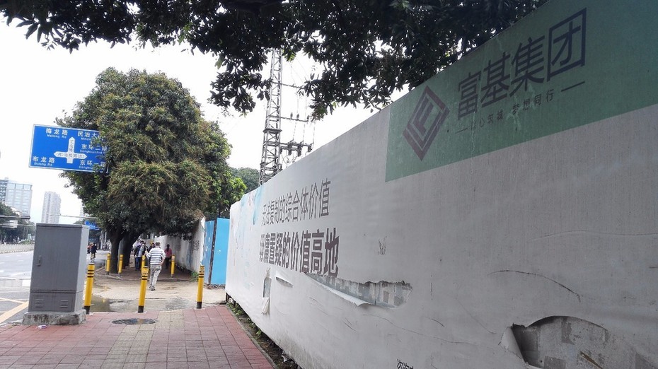 地块外围已经被围起来了,上面可以看见宣传标语:富基集团,无法复制的综合体价值,毋庸置疑的价值高地。
