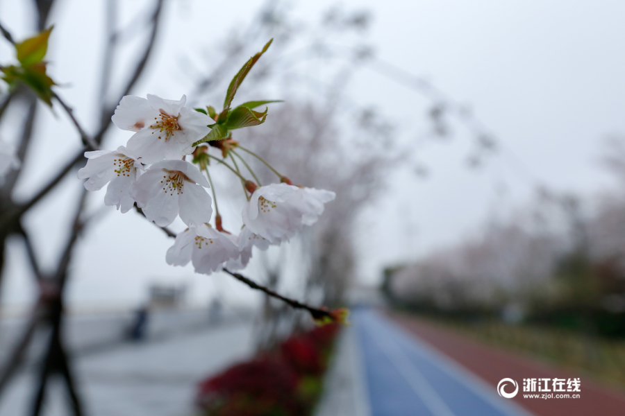 几乎一夜之间,滨江最美跑道变身樱花大道的照片刷爆了杭州人的朋友圈。
