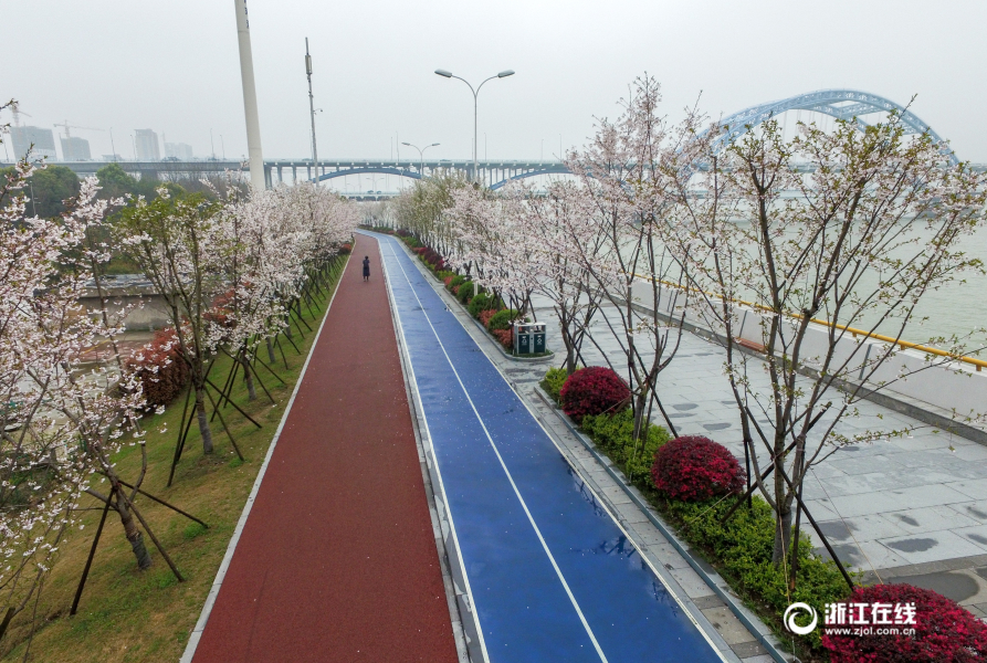 几乎一夜之间,滨江最美跑道变身樱花大道的照片刷爆了杭州人的朋友圈。