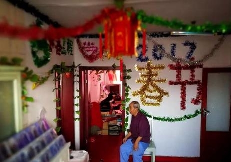 过年期间,几名大学生为老人装饰了房间。这些年两位老人无儿无女,没有亲人,学生们的到来让家里有了生机。