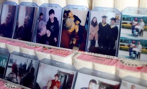 老人家中摆着很多照片,全部都是和前来看望他们的大学生拍的合照。