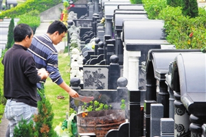 昨天,市民在西丽报恩福地文明祭祀。 深圳商报记者 管亚东摄