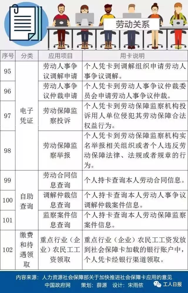 2014年7月31日,人社部提出,充分发挥社会保障卡在标准统一、功能兼容方面的优势,重点开发6项基本功能: