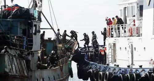 ▲资料图片:2016年11月30日,在全罗北道群山市于青岛西南方向137公里处,韩国海警队员正在对中国非法捕捞渔船进行盘查。(韩联社)
