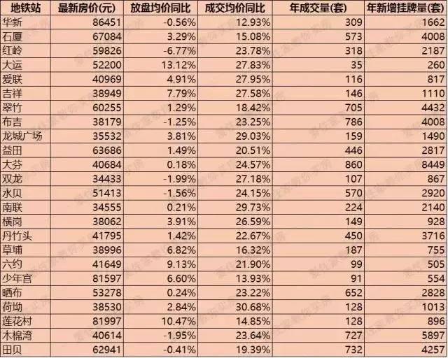 3号线是白领线,路过的市内的房价是5、6万为主,路过的龙岗是3、4万为主。最低价格是3万4千多,最高价格是8万2。成交最多是大芬,挂牌最多是大芬,大芬简直是刚需白领最佳居住地。