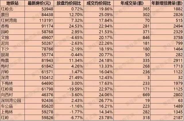 9号线不是一个低端西岸,多数为6万以上,最高去到15万。穿过的地方以海为主。成交最多的是文锦,挂牌最多的是文锦,罗湖果然每个地铁站都是成交明星。