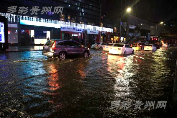 当晚,贵阳市云岩区文昌路段积水严重。 石开银 摄