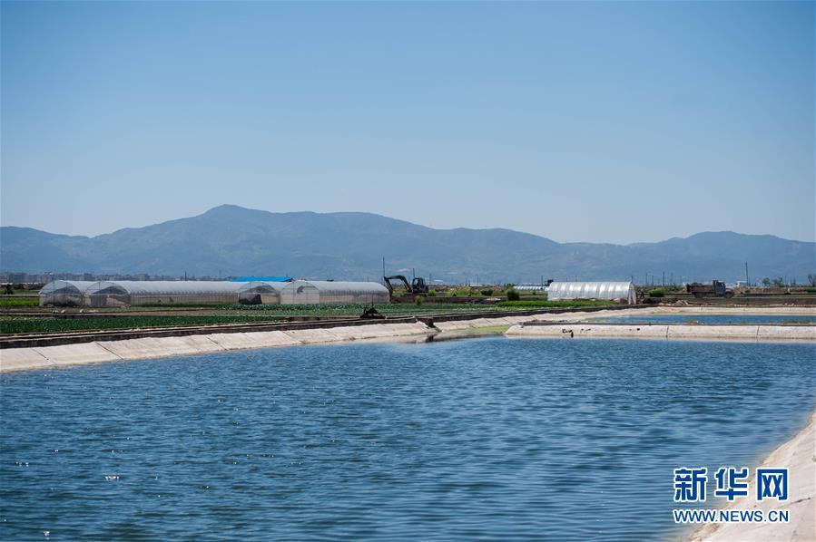 云南省玉溪市通海县一处杞麓湖环湖截污治污工程(4月6日摄)。