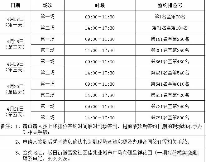 呈祥花园(一期)重点企业员工人才住房合格人员签约时间安排表