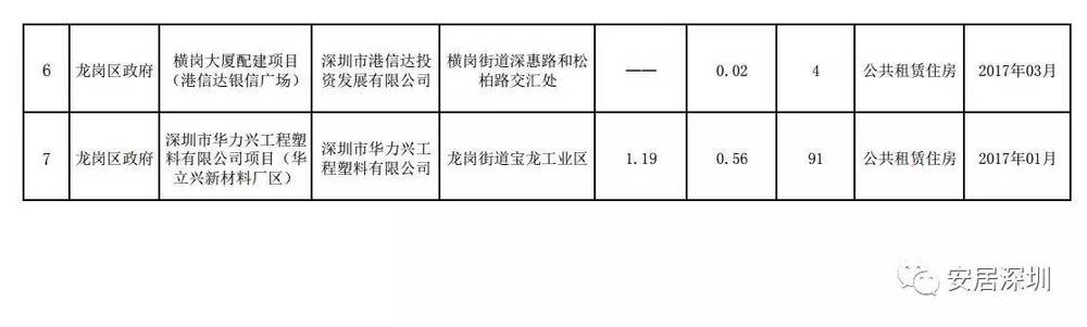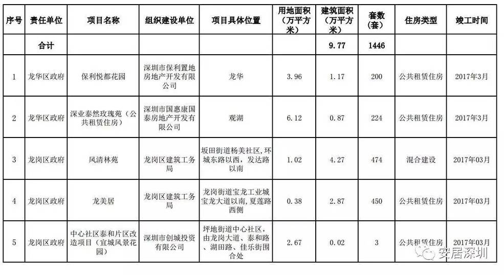深圳市2017年一季度保障性安居工程已竣工项目表