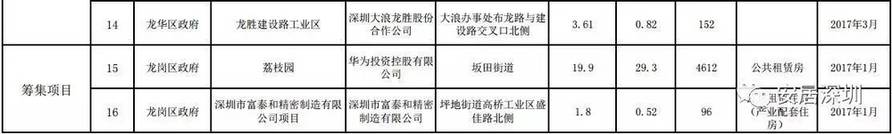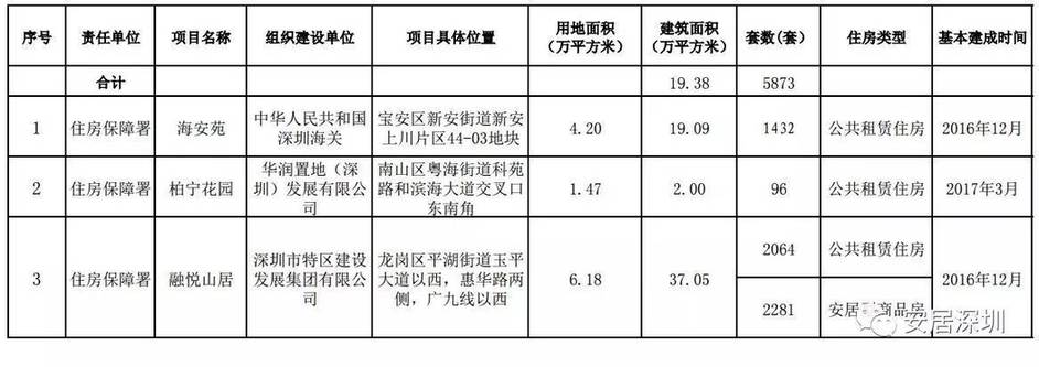 深圳市2017年一季度保障性安居工程已竣工项目表