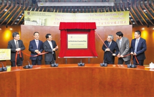 昨日,香港中文大学(深圳)瓦谢尔计算生物研究院揭牌。 深圳商报记者 吴吉 毕国学 通讯员 马明霞 摄