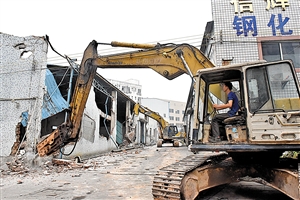 近期,龙华街道连出重拳拆违,相继扫除阻碍重点项目建设的“拦路虎”。昨日,该街道开展联合行动,对群协工业园3处约1700平方米的永久性建筑进行拆除。