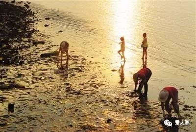 捡拾虾贝的渔民。