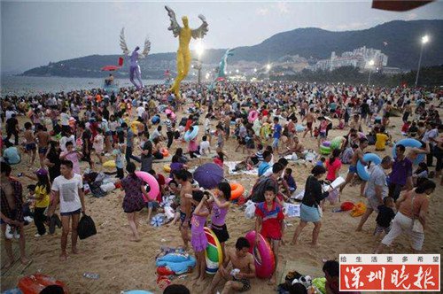 (大梅沙逢节假日人满为患)