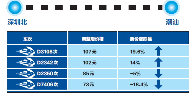 同区间不同车次票价有涨有降