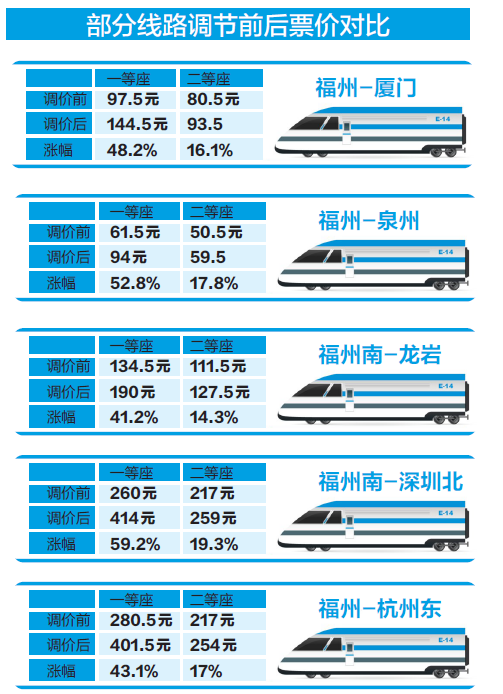 部分线路一等座涨价过半