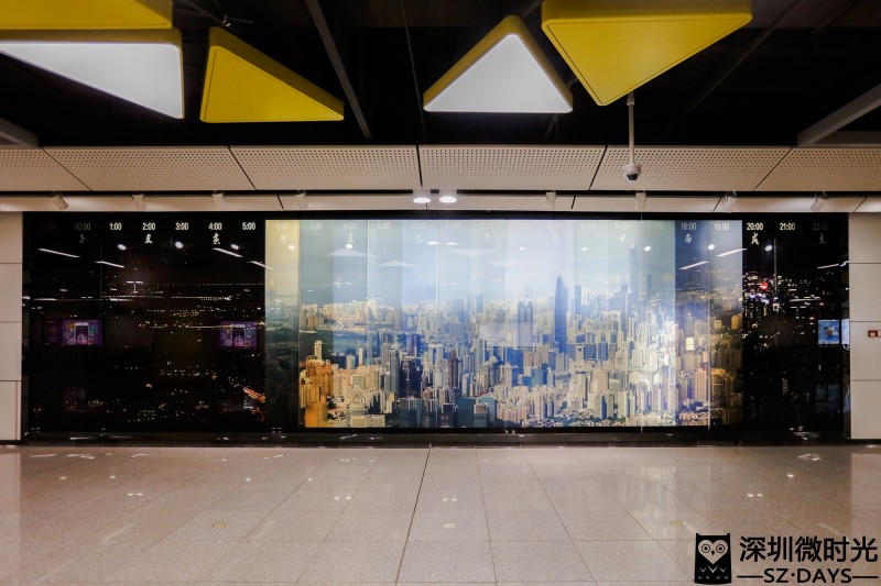 在赤尾站的这面墙上,一张巨幅的深圳城市景观,在一日24小时、12个时辰的变幻一览无余,壮观的让人心生豪气:原来我们生活的大深圳,每时每刻都美得这么妙不可言。