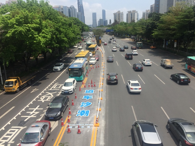 深南大道这条潮汐车道,全国首创了“遥控护栏”+灯控潮汐的组合潮汐车道控制模式。