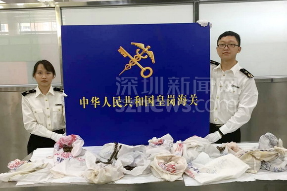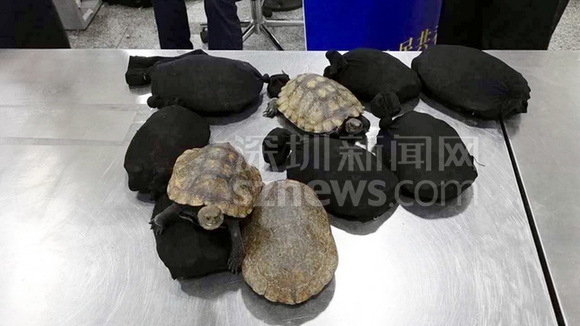在当天,皇岗海关还查获2宗旅客违规携带活体动物入境情事,当事人藏带手法同样是背包藏带,分别查获活体蛇80条、活体龟10只。