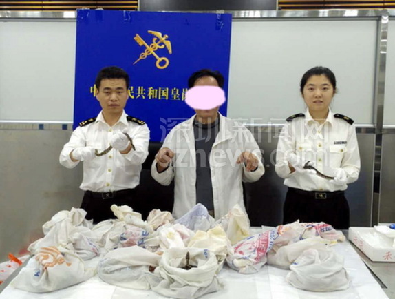 打开背包,里面全部都是蠕动着的活体蛇,发出“咝咝”声。皇岗海关消息,近日该关在福田口岸旅检大厅连查3宗旅客违规携带活体动物入境情事,共查获活体蛇178条,活体乌龟10只。