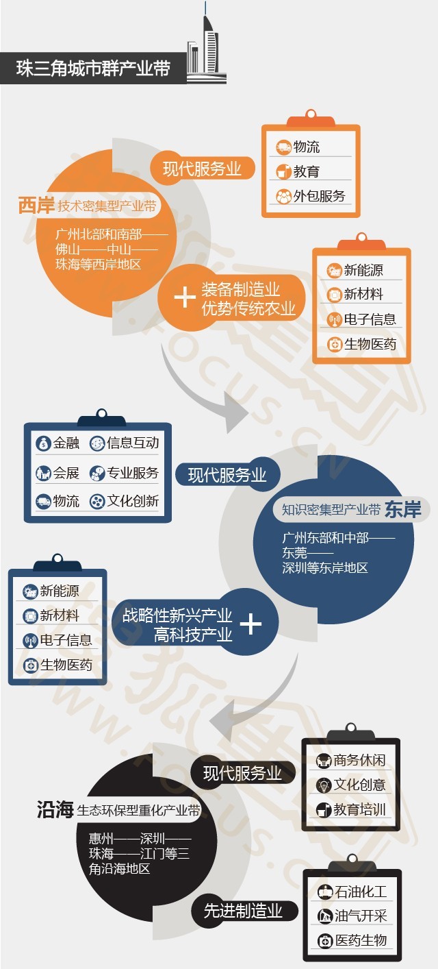 3个环珠江城市带:"深港莞惠"、"广佛肇清"、"珠澳中江"