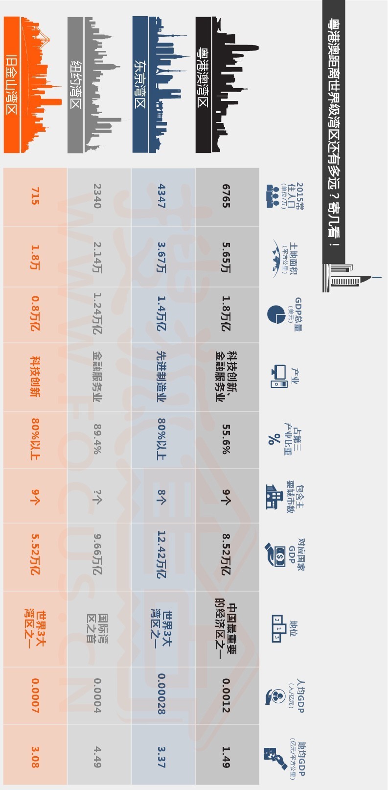2.根据测算,粤港澳大湾区城市群的GDP总量已经达到1.24万亿美元(约合9.6万亿港元)。超过了美国旧金山湾区,未来有望成为 超过东京湾区的亚洲经济总量最大的湾区城市群。