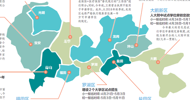深圳新闻网讯 深圳10个区(新区)小一、初一招生政策已全部公布,近日各区(新区)小一学位网上申请通道也将陆续开启。今年深圳学位申请主要变化有:一是取消将符合计划生育政策作为申请入学的必备条件,将计划生育作为积分入学项目;二是取消原“1 5”文件规定的营业执照、就学联系函和转学证明材料。