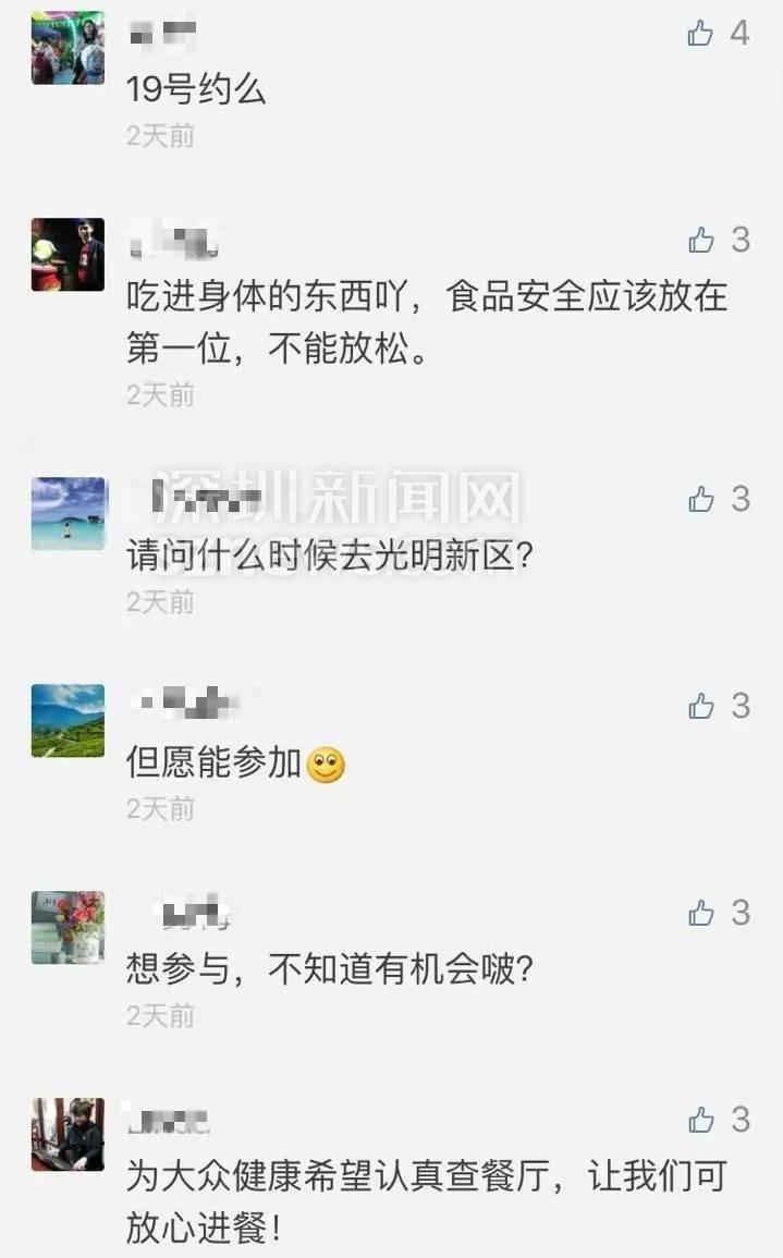 本次行动开始前,在深圳新闻网的微信号上向市民发出邀请,请热心网友来参加本周的星期三查餐厅行动,没想到留言就爆了!