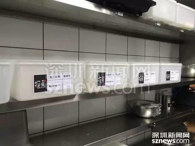 原料仓库里的食品还做了日期标签,执法人员表示探鱼自我管理要求较高,但新放入的食材没有及时更新标签,要注意严格遵守定期更换。