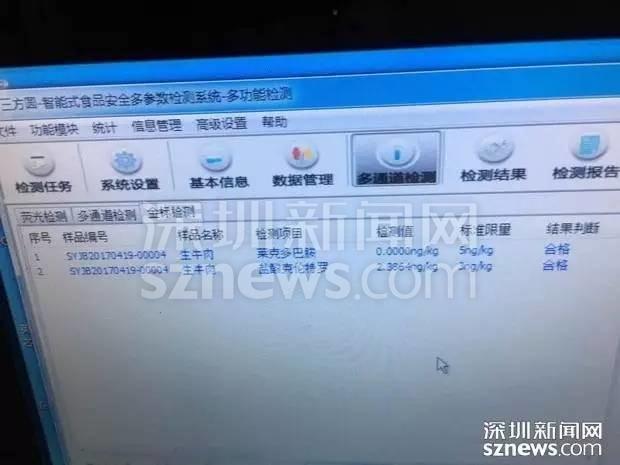 现场快检猪肉牛肉是否含瘦肉精,并检测菜心和生菜农残是否超标,结果显示均合格。