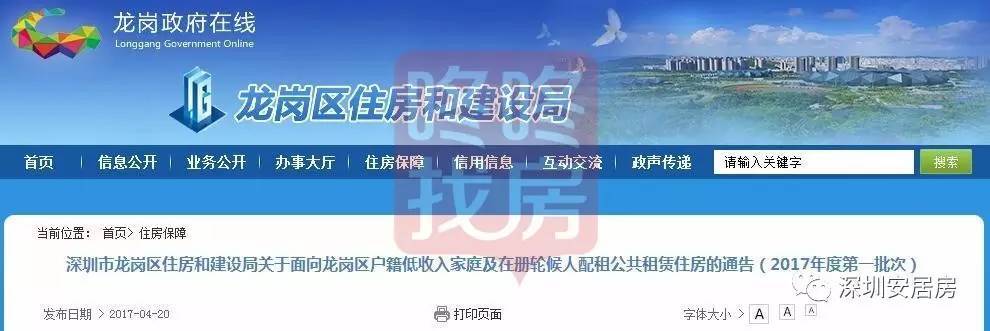新闻提要 根据《深圳市保障性住房条例》、《深圳市公共租赁住房轮候与配租暂行办法》等有关规定,我局现启动2017年度第一批次面向龙岗区户籍历史遗留低收入家庭(以下简称低收入家庭)及在册轮候人公共租赁住房配租工作。