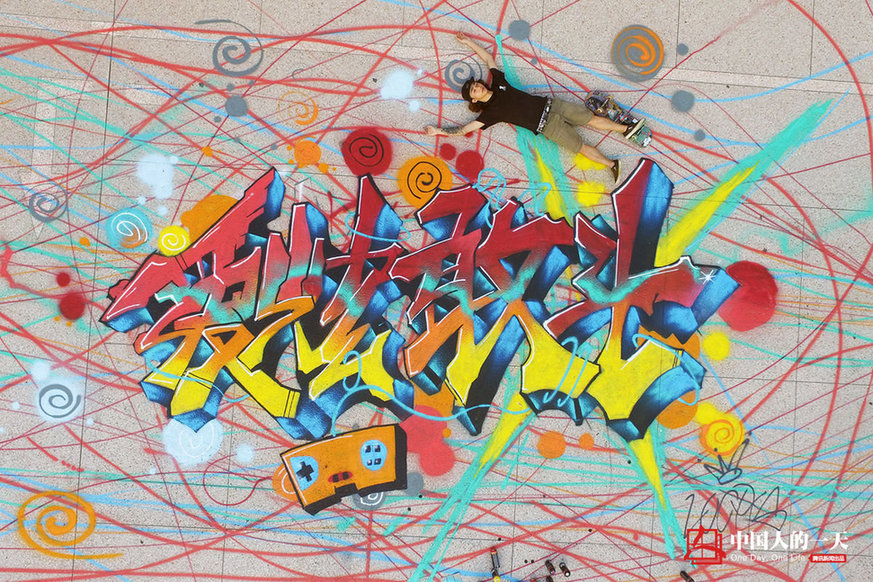90后深圳青年甲板最近搞了一件大事:前几天蛇口体育中心溜冰场这块地还是单调的水泥灰,甲板和他的小伙伴用涂鸦給这块地绘上了斑斓的色彩。工程量不是最难的事情,但用滑板来涂鸦,不易掌控的滑板使难度陡然加大,他磨坏了一双鞋和一块滑板,并用掉了60瓶喷漆。这一炫酷而特别的举动,引来圈内外众多赞许和议论,“是傻吗?”“行为艺术”的非议也不绝于耳。(图/文张小懒)