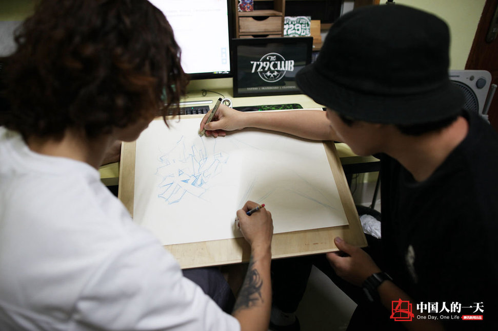 甲板是一名平面插画师,工作时间朝九晚五,这样的单调生活对创意是一种消磨,这一代90后对个性的追求往往大过金钱。下班之后,甲板运营着自己的纹身工作室,和志同道合的小伙伴玩涂鸦,练滑板,打游戏。