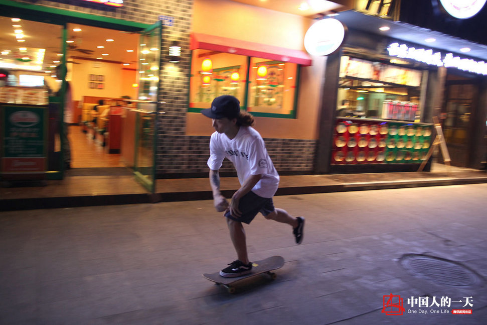 失眠的甲板在街上游荡,滑板代替了双脚丈量地面,一路滑回家。吹吹风,醒醒神,再考虑一下如何用滑板更高地执行作画创意。