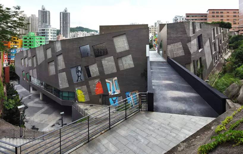 这座美术馆帮助大芬把都市纹理交织在了一起。在功能上把美术馆、画廊、商业、可租用的工作室等等不同功能混合成一个整体,使日常生活、艺术活动与商业设施混合成新型的文化产业基地。与其说是一座美术馆,还不如说是一座乡村活动中心。过去,山下的大芬村和山上的居民区是分割开的。为了让这两片区域连接起来,建筑师设计了一座可以通往山上的桥。