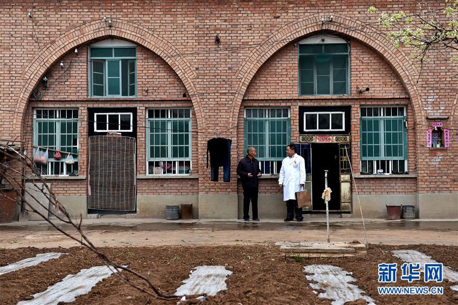 4月19日,在山西省平顺县苗庄镇北甘泉村,崔成斌上门为一位老人做检查。新华社记者詹彦摄