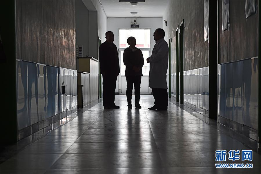 4月19日,在山西省平顺县苗庄镇卫生院,崔成斌(右)为病人介绍药品使用的注意事项。新华社记者詹彦摄