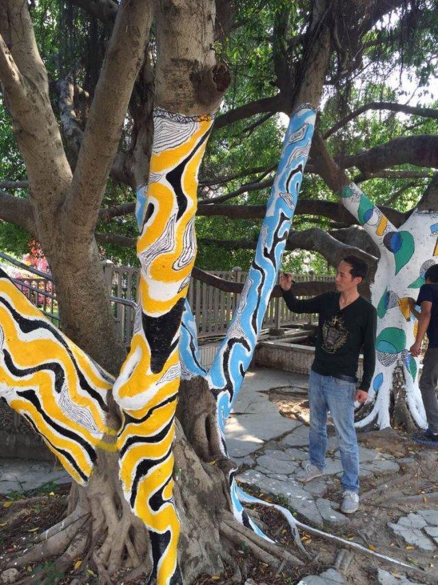 "这样的人行道不但漂亮,更增添了文化和艺术气息,很有创意。"路过的行人纷纷被"树干画"所吸引,驻足、拍照、观赏,对政府的这种用心之举赞不绝口。而在观湖,这样的创意之举不仅仅在环观南路有。近日,在樟坑径上围路边的景观树上,也陆续出现了许多色彩缤纷的艺术涂鸦,每棵树上的涂鸦多种多样、形态各不相同,让人仿佛去到了童话世界当中。一幅幅美丽的"树干画"让路边古朴的大树焕然一新,给上围艺术艺术部落增添了新的活力。"今天带着孩子路过这里,孩子告诉我说树木上有五颜六色的图案和形状,仔细一看,真的好漂亮,住在这里每天能看到这些艺术作品,是一件很幸福的事情。"住在上围村的市民尹女士告诉记者,这些"树干画"成了上围一道靓丽的风景,看了让人心里暖暖的,希望能看到更多的这样的树干画。"提升城市品质,需要增加文化和艺术气息的注入,高速发展的现代都市,更需要一份这样的诗意。"参与上围路"树干画"创作的艺术家邹卫告诉记者,这次"树干画"艺术涂鸦活动以"缤纷世界,美丽观湖"为主题,观湖街道特邀深圳大学艺术系的师生和樟坑径上围艺术部落的10多位艺术家共同参与,经过近一周的精心准备和创作,目前已经全部完成的。艺术家以四季缤纷色彩作为灵感对每一棵树进行创作,加入了现代与时尚的元素,艺术家在为每棵树画画的时候,会根据生长造型和树皮破损处进行创作,90棵树,代表了艺术家的90个灵感创作,希望能通过这样的方式,让更多市民品味到观湖不一样的艺术气息。(记者黄明钢通讯员李飞)
