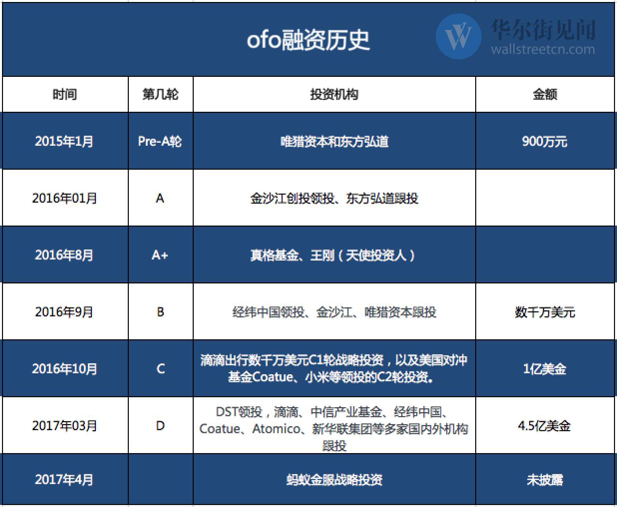 ▲ofo的主要融资历史(略有删减)(数据来源:华尔街见闻)