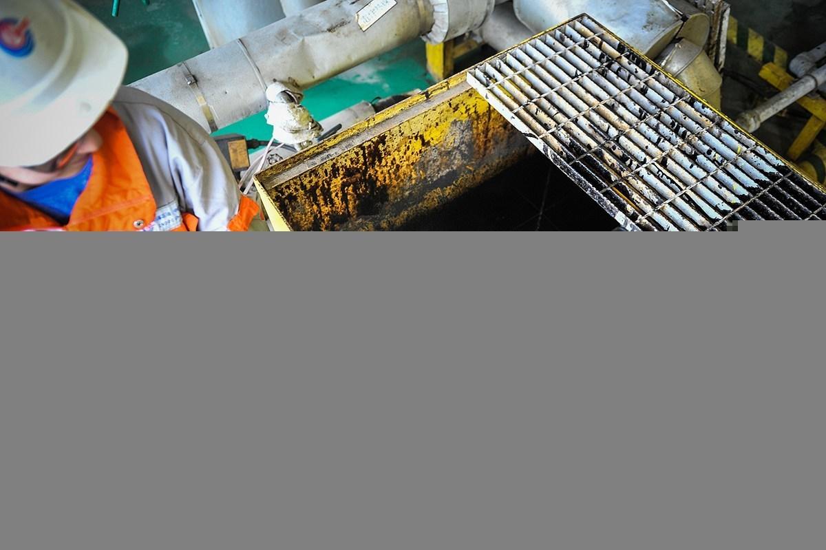 由于CEPJ平台开采的地层岩石结构疏松,开采过程中存在地层出砂的情况,生产流程需要定期冲排砂,清理冲砂槽也成为平台最累人的活之一。冲出来的砂需要先铲进桶里,再将砂倒进岩屑箱返回陆地处理。“通常一个来回就已经大汗淋漓了,我们每天都要这样来回几十次,才能把冲砂槽清理干净。”程垚说。中控室,相当于海上中央平台的“大脑”。平台上的所有流程状态都会在这里得到监控,一旦发现异常,需要第一时间组织现场人员进行处理。在无数个不眠之夜,程垚都独自在这里值班,关注着整个平台的生产动态。