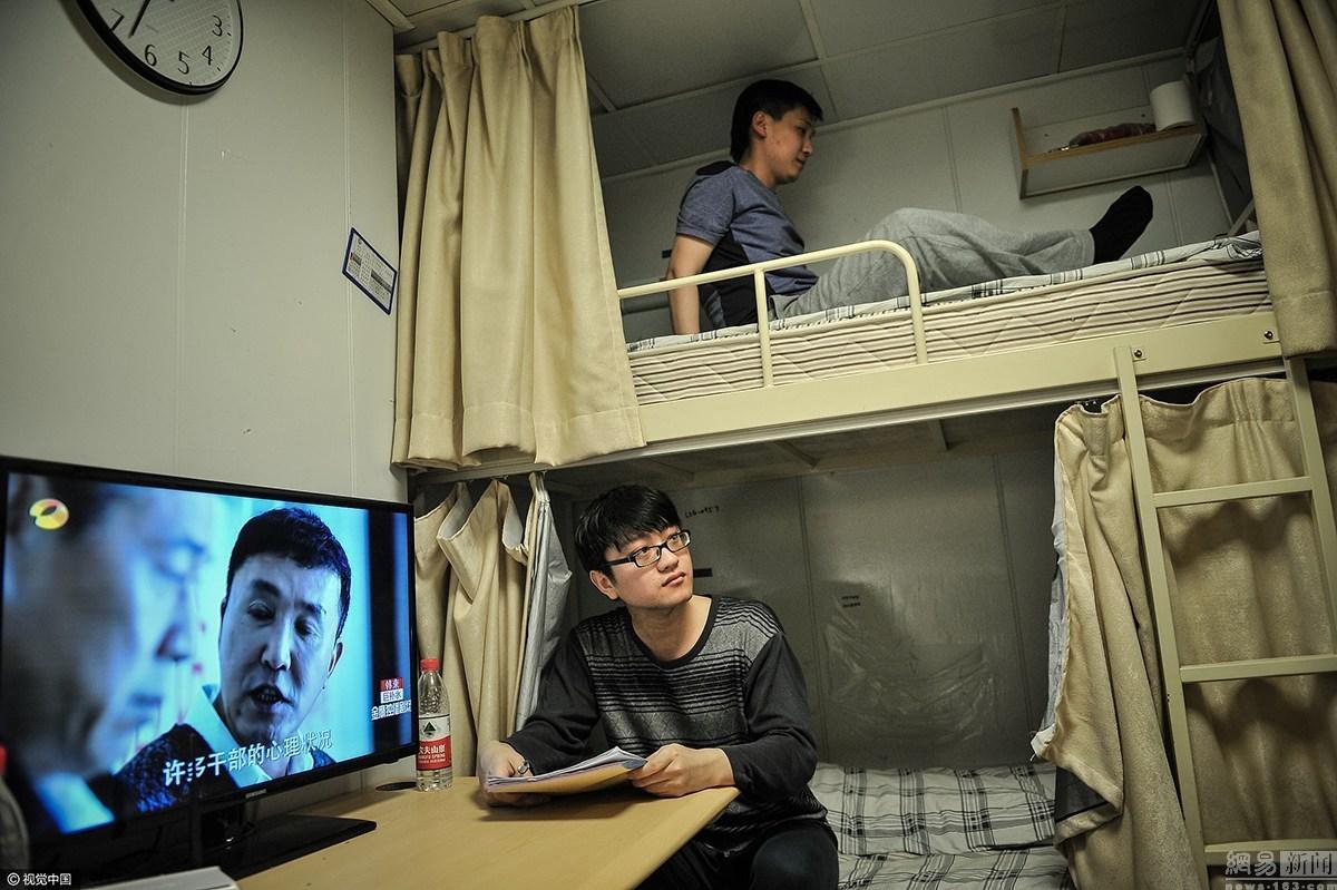 晚餐时间,食堂里依然播放着提示安全的信息。海油工人的吃饭速度非常快,通常都在10分钟以内,因为现场要求24小时都得有人值班,需要大家轮换就餐。对他们来说,吃饭不过是工作间隙的短暂休整。结束了一天的工作,工人们回到各自的宿舍。由于刚刚倒班上平台,程垚需要将自己的床铺收拾一下。最近《人民的名义》火了,几乎每间宿舍都在追剧。看电视也是海上少有的娱乐方式之一。“倒班上来的第三周,是最熬人的时候。不仅有夜班倒白班的生理考验,还有心理上的煎熬。平台上待久了,也难免会想念家里的人。这时候的脾气容易变得急躁,所以在海上最好的调节方式就是运动。”健身房是程垚经常去的地方,一个多小时的运动,他已经是大汗淋漓。