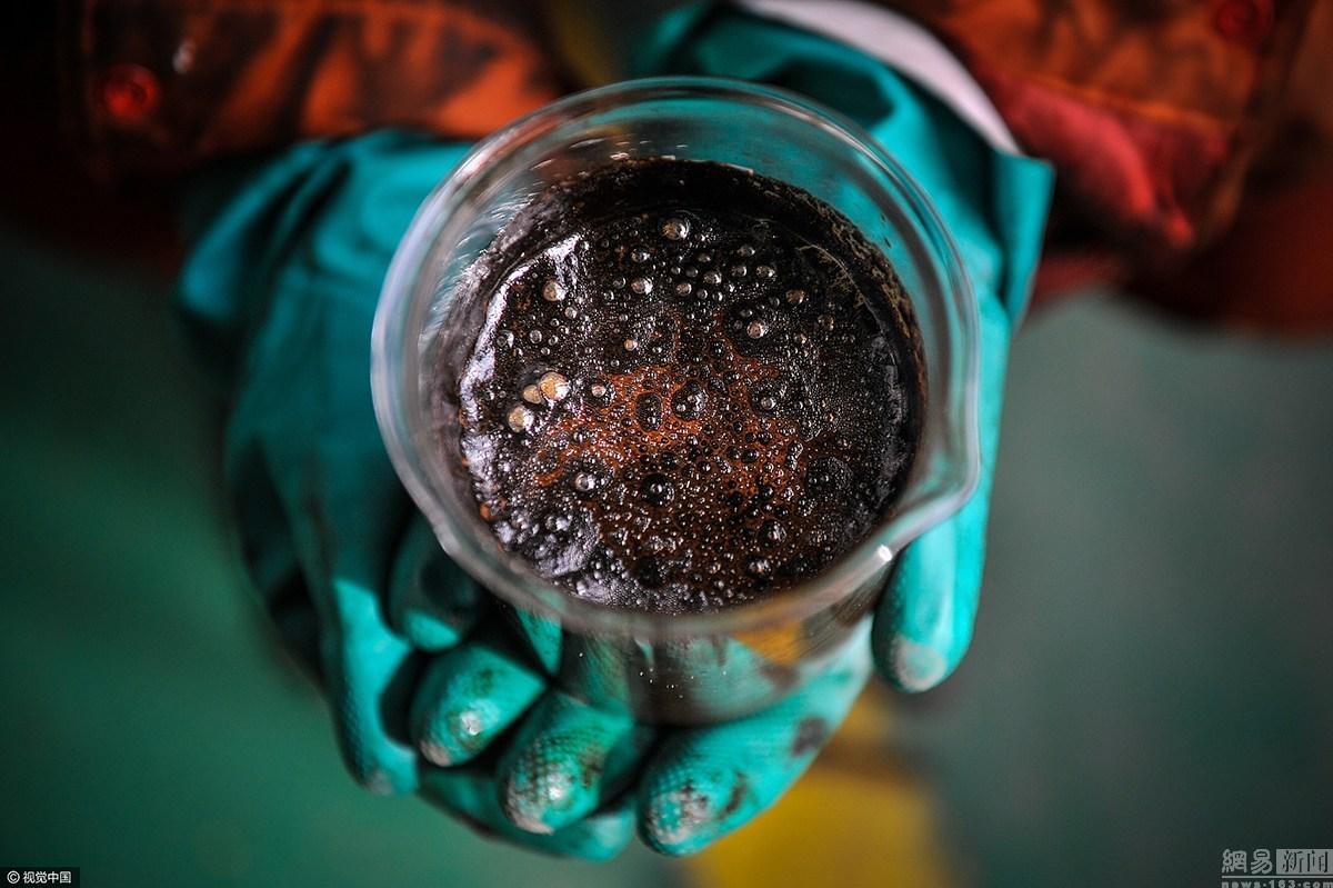 从取样点,程垚取出一杯黑乎乎冒着泡沫的液体,这就是石油。含水量较高的原油呈现一种棕色,而较纯正的油则是近乎黑色的。有人将石油称为“工业的血液”,从车船所使用的汽油柴油,到日常所需的蜡烛化妆品,石油相关产品在现代生活中几乎无孔不入。