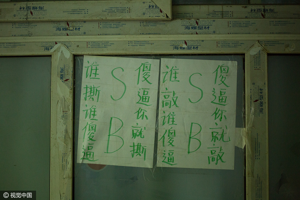 这处群租房是板房,与某高校的学生宿舍共处同一建筑,在很多地方只有一窗之隔。由于有人在走过该走廊时敲窗户,打扰到了住在里面的女学生,于是,有人就在窗户上贴了“公告”。