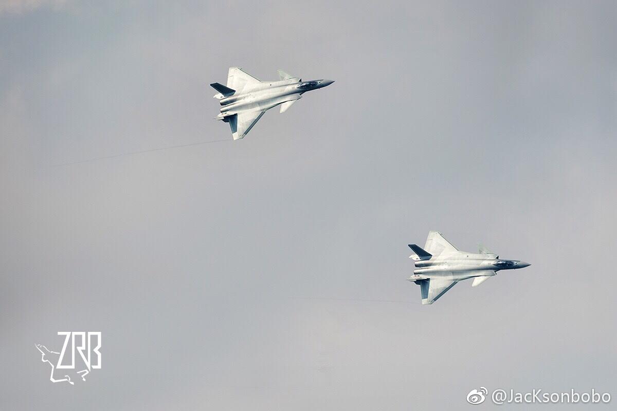 近日,两架割裂迷彩歼20战机同时出现,两款战机在空中姿态轻盈,非常优美。