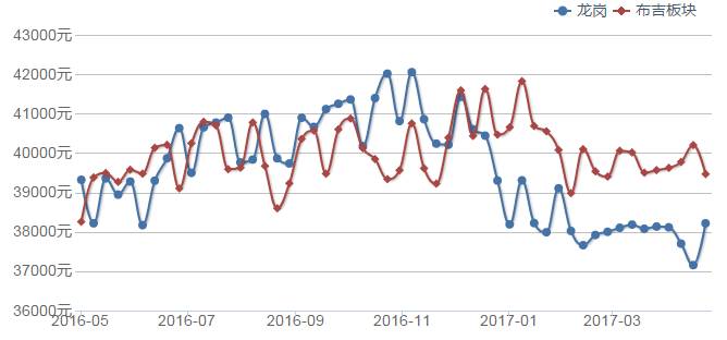 从近一年不仅房产均价走势可以明显看到,布吉片区房价稳定性很高,在去年10月“深八条”出台后,与房价下探的龙岗大区相比,异常坚挺。